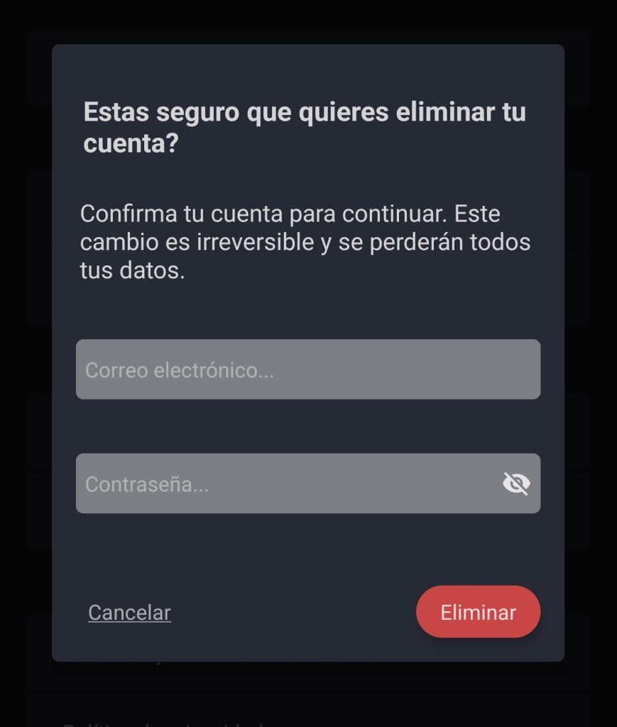 Si el usuario quiere darse de baja de la aplicación, puede realizar las siguientes acciones dentro de la app para llevarlo a cabo: